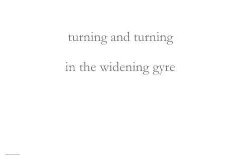 This view seems to have done away with much, if not all of Yeats’s capital letters, but the big change, for me, is that they’ve completely changed the way one approaches the poem now. You can’t get the sense of movement from the screen grabs, but the rate at which the words appear and disappear limits the speed at which you can read the poem (in a good way, I think) and it emphasizes moments of tension in the poem. It creates dozens more line breaks than Yeats included or arguably intended. In a way, you’re no longer reading Yeats’s poem–you’re reading the programmer/designer’s edition of Yeats’s poem.