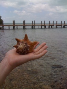 Amy found this conch shell right near the shore. I convinced her to put it back, largely because there was a big sign saying that harvesting conch brought a $500 fine, and I wasn’t sure if that included empty shells. It was gorgeous, though, and my iPhone photo doesn’t do it justice.