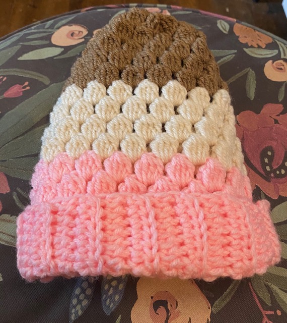 Most of the hats and scarves I make these days wind up either in our Little Free Library or in the community pantry at our daughters’ school. There’s only so many hats and scarves a family needs.